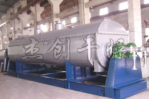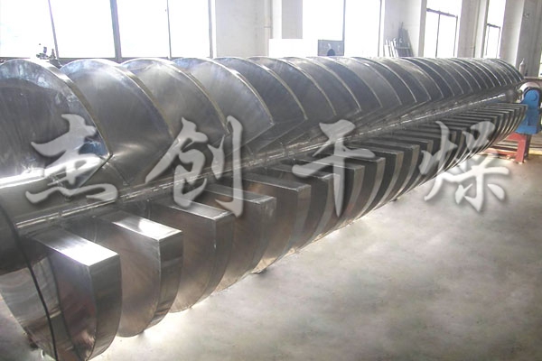 高嶺土專用槳葉干燥機的空心軸上密集排列著楔型中空漿葉,熱介質(zhì)經(jīng)空心軸流經(jīng)漿葉。單位有效容積內(nèi)傳熱面積很大,熱介質(zhì)溫度從-40℃到320℃,可以是水蒸汽,也可以是液體型:如熱水、導(dǎo)熱油等。間接傳導(dǎo)加熱,沒有攜帶空氣帶走熱量,熱量均用來加熱物料。熱量損失僅為通過器體保溫層向環(huán)境的散熱。楔型漿葉傳熱面具有自清潔功能。物料顆粒與楔型面的相對運動產(chǎn)生洗刷作用,能夠洗刷掉楔型面上附著物料,使運轉(zhuǎn)中一直保持著清潔的傳熱面。漿葉干燥機的殼體為Ω型,殼體內(nèi)一般安排二到四根空心攪拌軸。殼體有密封端蓋與上蓋,防止物料粉塵外泄而發(fā)揮作用。