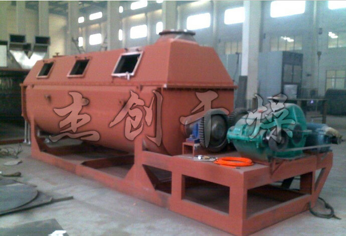 漿葉干燥機已成功地用于食品、化工、石化、染料、工業(yè)污泥等領(lǐng)域。設(shè)備傳熱、冷卻、攪拌的特性使之可以完成以下單元使用:燃燒(低溫)、冷卻、干燥(溶劑回收)加熱(融化)、反應(yīng)。攪拌漿葉同時又是傳熱面,使單位有效容積內(nèi)傳熱面積增大,縮短了處理時間。楔型漿葉傳熱面又具有自清潔功能。壓縮--膨脹攪拌功能使物料混和均勻。物料沿軸向成"活塞流"運動,在軸向區(qū)間內(nèi),物料的溫度、濕度、混合度梯度很小。用導(dǎo)熱油做熱介質(zhì)漿葉干燥機可完成低溫燃燒工作。如:二水硫酸鈣(Ca2SO4·2H2O) 燃燒轉(zhuǎn)化為半水硫酸鈣(Ca2SO4·1/22H2O)。碳酸氫鈉(NaHCO3)經(jīng)煅燒轉(zhuǎn)化為純堿(Na2HCO3)等。通入冷卻介質(zhì),如水、冷卻鹽水等即可用來冷卻。如:使用于純堿行業(yè)的漿葉式?jīng)鰤A機,取代老式的空氣冷卻涼堿機,節(jié)省了能源及尾氣處理設(shè)備,下降了使用費用。干燥,設(shè)備主要的功能,不使用熱空氣,使溶劑回收、能源消耗、環(huán)境控制處于易處理的理想狀態(tài)。對需回收溶劑、易燃易氧化熱敏性物料尤為適應(yīng)。已廣泛用于精細化工、石化、染料行業(yè)。軸向區(qū)間內(nèi),溫度、濕度、混合度的均勻性,使得設(shè)備可用來加熱或融化,或進行一些固體物料反應(yīng)。在復(fù)合肥及變性淀粉行業(yè)均已成功使用。
