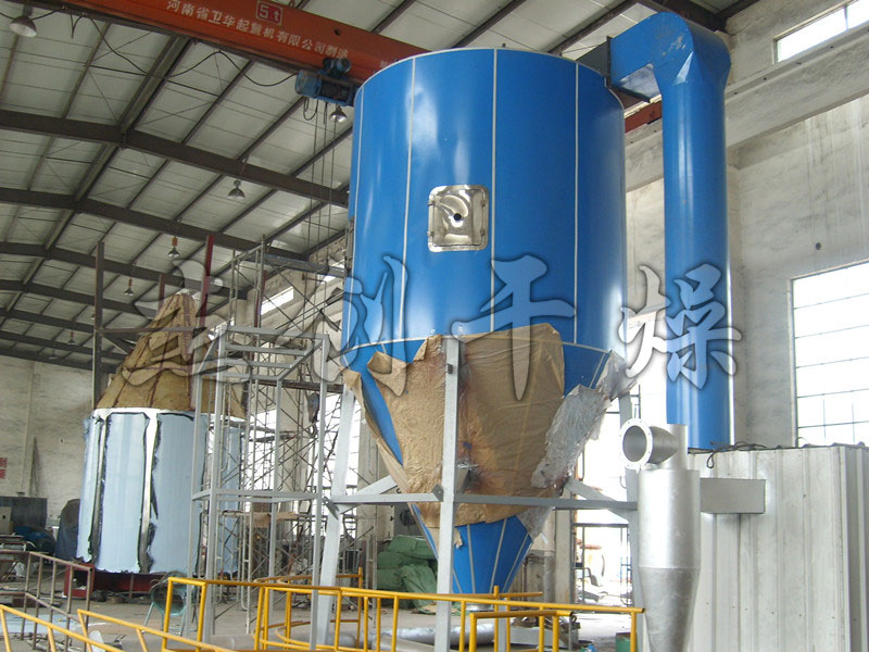 該生產(chǎn)線(xiàn)由供料系統(tǒng)、介質(zhì)循環(huán)系統(tǒng)、空氣加熱凈化系統(tǒng)、干燥塔系統(tǒng)、收料系統(tǒng)、控制系統(tǒng)等多個(gè)系統(tǒng)整合而成。主塔系統(tǒng)集中了目前噴霧干燥工程的所有高端技術(shù),噴干機(jī)組的收料系統(tǒng)由一級(jí)旋風(fēng)分離器+布袋除塵器組合形成。一級(jí)旋風(fēng)采用高氣量高xiao率旋風(fēng)進(jìn)行收集,其收粉率能達(dá)到96%左右分,而布袋除塵器是針對(duì)蛋白粉類(lèi)除塵專(zhuān)門(mén)設(shè)計(jì)的優(yōu)化設(shè)備,能使物料與風(fēng)進(jìn)行分離并沉降,布袋為拒水防油防靜電布袋,過(guò)濾目數(shù)可達(dá)500目以上。
