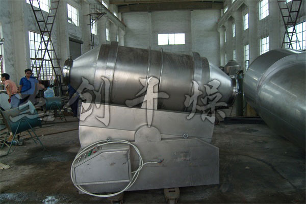 EYH 二維運(yùn)動(dòng)混合機(jī)的轉(zhuǎn)筒可同時(shí)進(jìn)行二個(gè)運(yùn)動(dòng),一個(gè)為轉(zhuǎn)筒的轉(zhuǎn)動(dòng),另一個(gè)為轉(zhuǎn)筒隨擺動(dòng)架的擺動(dòng)。被混合物料在轉(zhuǎn)筒內(nèi)隨轉(zhuǎn)筒轉(zhuǎn)動(dòng)、翻轉(zhuǎn)、混和的同時(shí),又隨轉(zhuǎn)筒的擺動(dòng)而發(fā)生左右來回的摻混運(yùn)動(dòng),在這兩個(gè)運(yùn)動(dòng)的共同作用下,物料在短時(shí)間內(nèi)得到均勻的混合。EYH二維混料機(jī)適合所有粉、粒狀物料的混合。