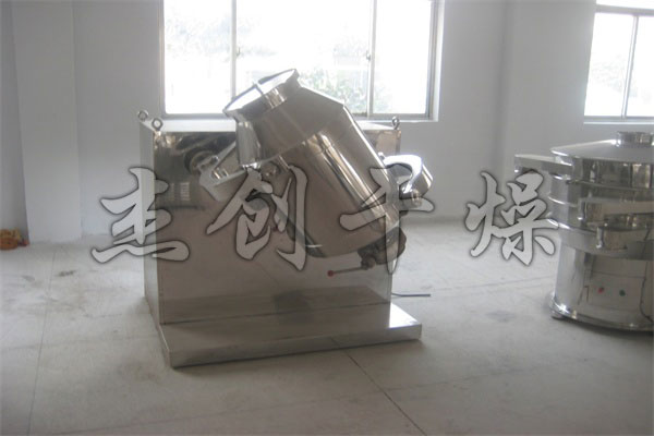 該機(jī)在運(yùn)行中,由于混合桶體具有多方向運(yùn)轉(zhuǎn)動(dòng)作,使各種物料在混合過程中加速了流動(dòng)和擴(kuò)散作用,同時(shí)避免了一般混合機(jī)因離心力作用所產(chǎn)生的物料比重偏析和積聚現(xiàn)象,混合無死角,能有效確保混合物料的均勻度。