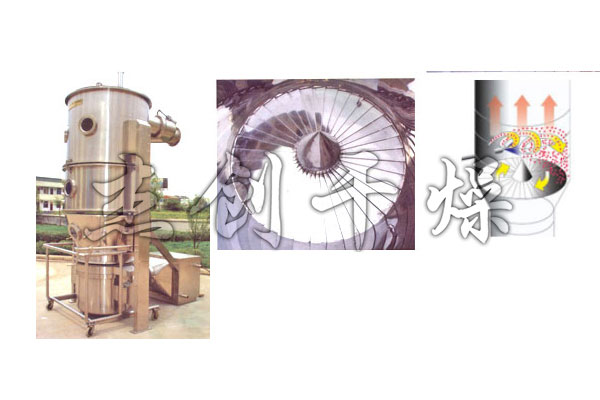 旋流流化床制粒包衣機是將流化床做成葉片式結(jié)構(gòu)的流化床,并使葉片呈一定斜度,讓氣流從葉片的間隙通過,形成環(huán)流狀的強大氣流,使物料呈旋渦狀似的有序運動,同時安裝在側(cè)壁的氣動噴嘴將粘合劑或包衣液噴入呈旋渦狀的物料層,從而將粉體制成顆?;颢@得連續(xù)均勻的衣膜。