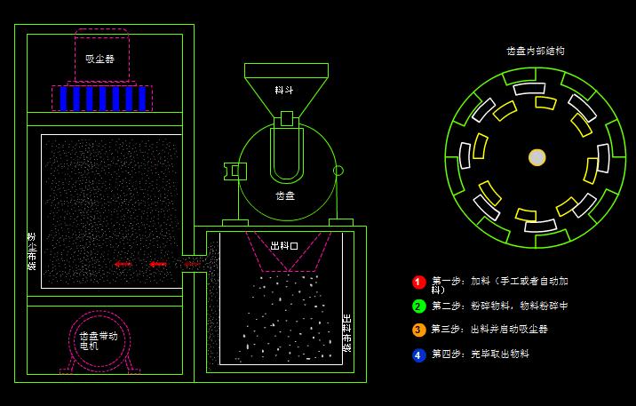 4、本機(jī)利用活動齒盤和固定齒盤問的高速相對運(yùn)動,使被粉碎物經(jīng)齒沖擊、摩擦及物料彼此間沖擊等綜合作用獲得粉碎。