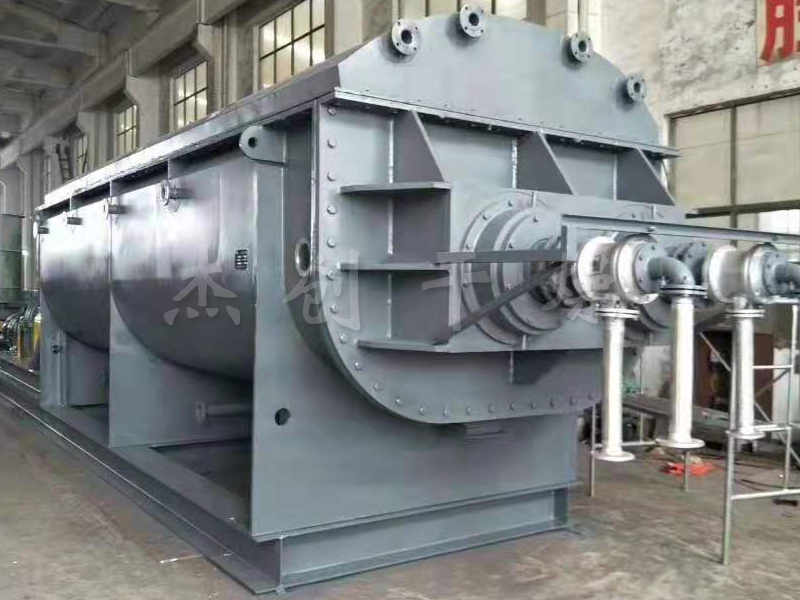 ??物料由進料口送入干燥機,工作介質(zhì)在本體外殼和空心軸之間流動,通過C型夾套、空心軸和軸上焊接的空心盤片傳遞熱量,物料被間接加熱干化,產(chǎn)生的水蒸氣聚集在干燥機的穹頂,由載氣帶出干燥機。空心盤片與軸基本垂直,通過盤片上的推進/攪拌器的作用,對物料進行攪拌、推進,不斷更新干燥面,從而實現(xiàn)干燥的目的。用蒸汽間接加熱,通過攪拌物料使水分更快蒸發(fā),進行干燥。